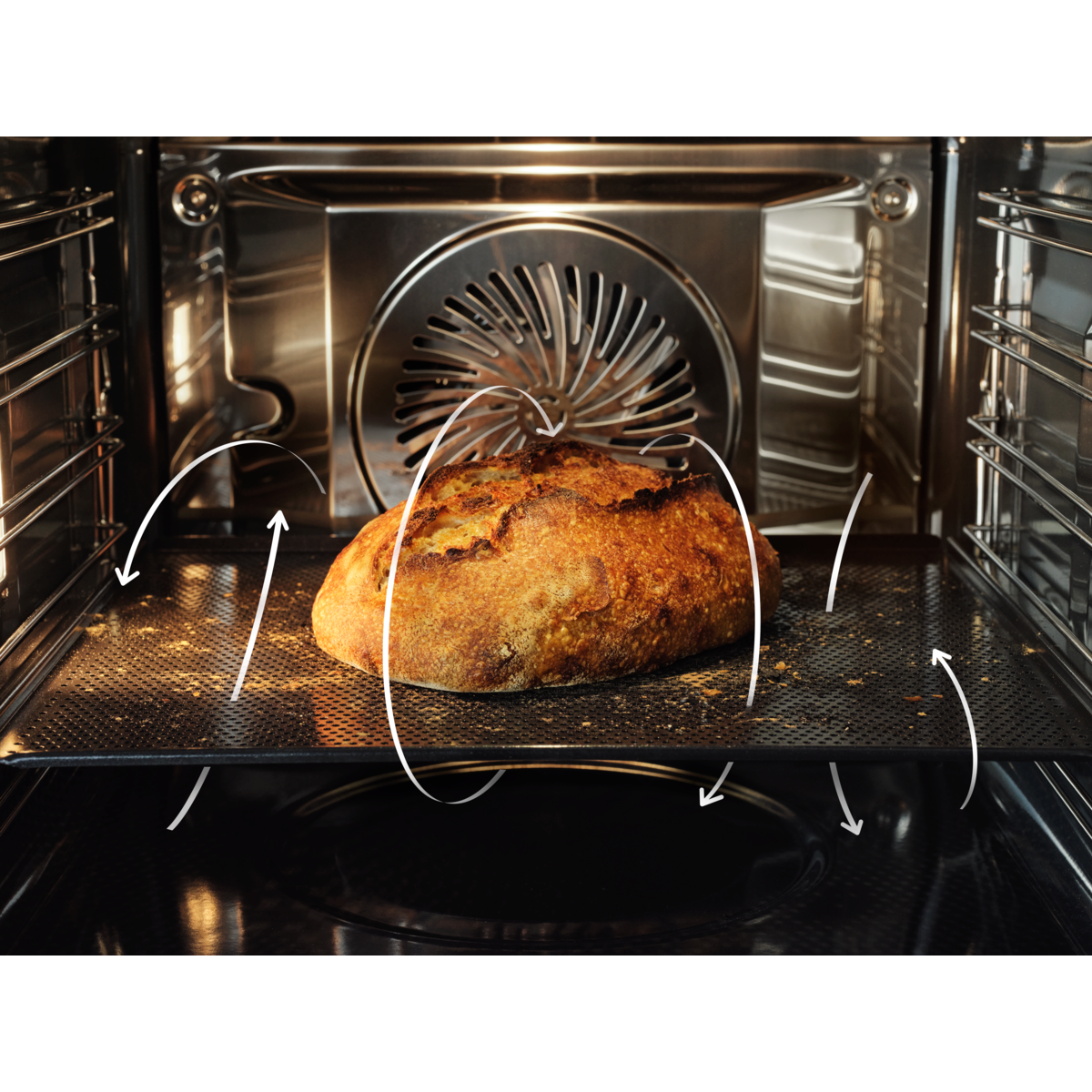Tabuleiro perfurado, circulação de ar uniforme. Um acabamento crocante perfeito*
