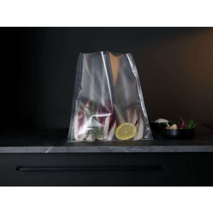 Rolo de sacos de vácuo recicláveis e livre de BPA, ideais para conservação de alimentos e cozinhar em sous vide.