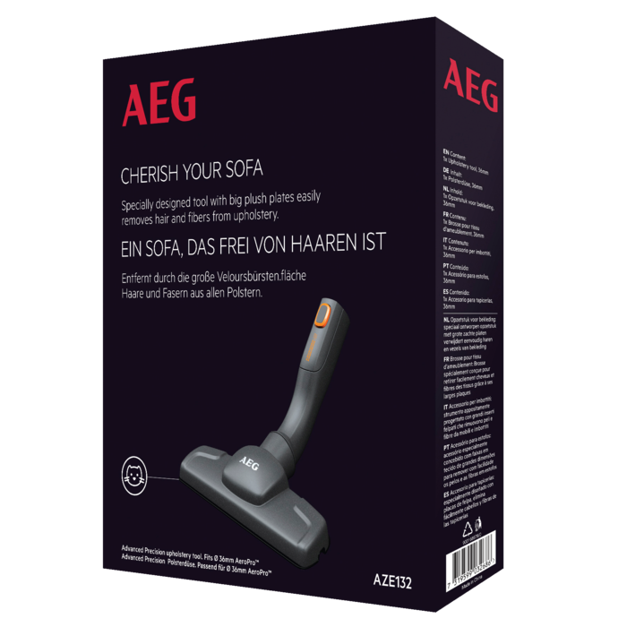 A ferramenta de estofos foi especialmente concebida com grandes placas de veludo que removem facilmente pelos e fibras dos seus estofos.