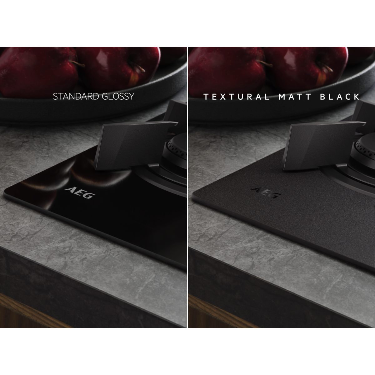 Com um acabamento preto mate, de aspeto elegante e texturado, esta placa de vidro temperado é fácil de limpar e resiste a dedadas. Combina na perfeição com o exaustor, criando uma cozinha moderna e intemporal.