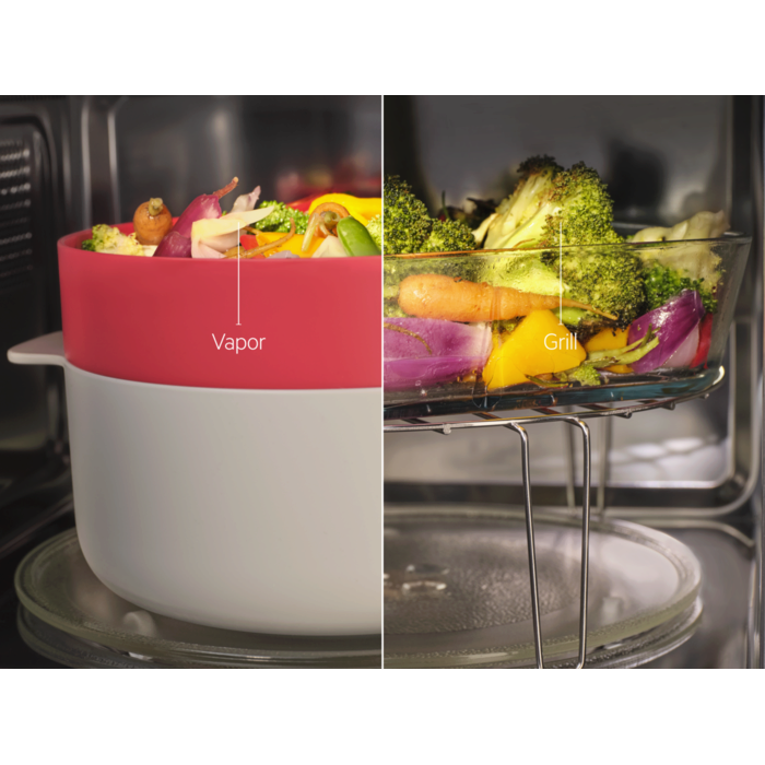 Micro-ondas com Grill e SteamSet: Acabamentos perfeitos, eficientemente