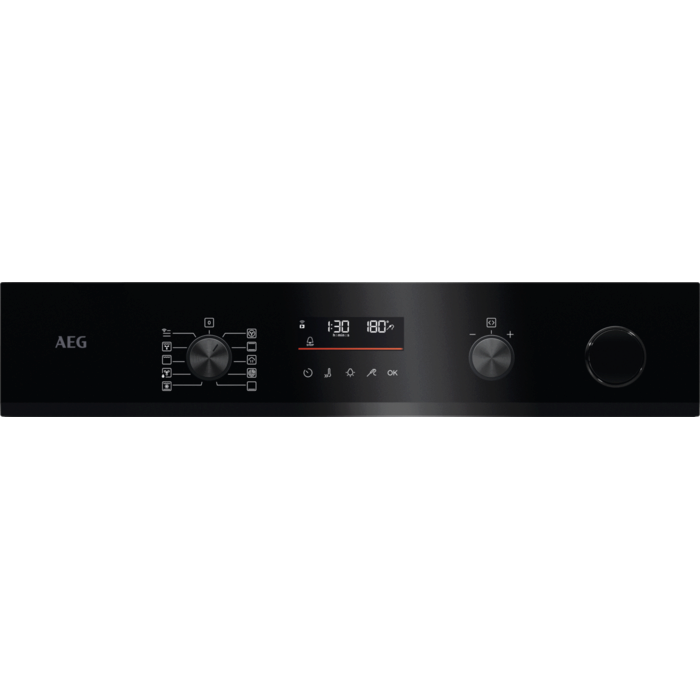 Forno a vapor com limpeza pirolítica da Série 6000 SenseCook com SteamCrisp e Display LED Explore com WiFi, capacidade de 72 litros, 9 funções e 45 programas automáticos, sonda térmica, comandos retráteis, calhas telescópicas num nível, fecho suave da porta com 3 vidros, vidro preto com borda biselada e puxador preto anodizado