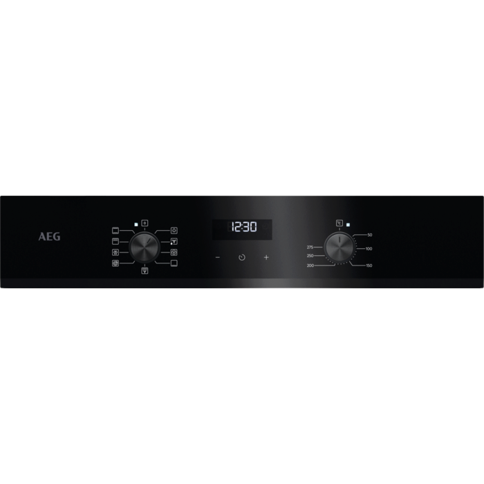 Forno multifunções da Série 5000 SurroundCook com Display LED, capacidade de 72 litros, com limpeza AquaClean, 9 funções, comandos retráteis Inox, porta com 2 vidros, vidro preto com borda biselada e puxador preto anodizado