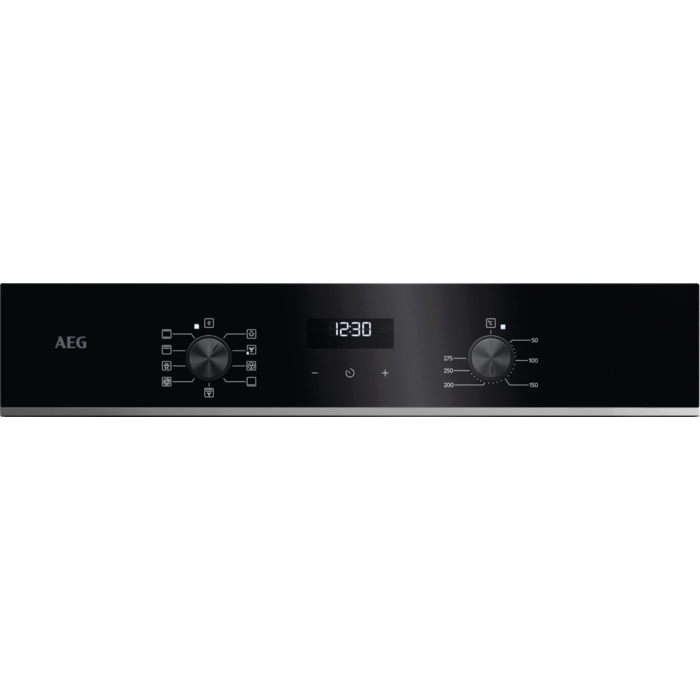 Forno Série 5000 SurroundCook, 72 L, 60 cm, vidro preto com perfil Infinity em inox e puxador preto anodizado, classe energética A+, função Aqua Clean, 9 programas, ecrã LED, comandos escamoteáveis e calhas telescópicas num nível.