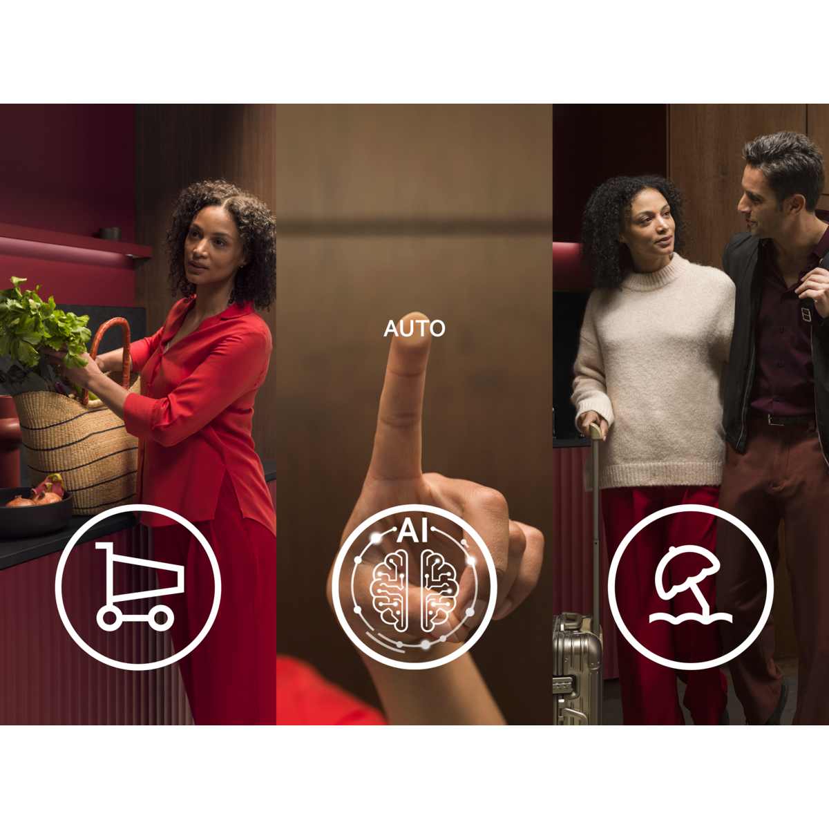*Testado nos modelos 1780 CB Multichill e 1780 CB Twintech NoFrost, comparando o consumo de energia a 25 °C com o modo Auto Vacation ativado através do AI CoolAssist, versus as definições de fábrica com o AI CoolAssist desativado. A poupança real de energia pode variar.
