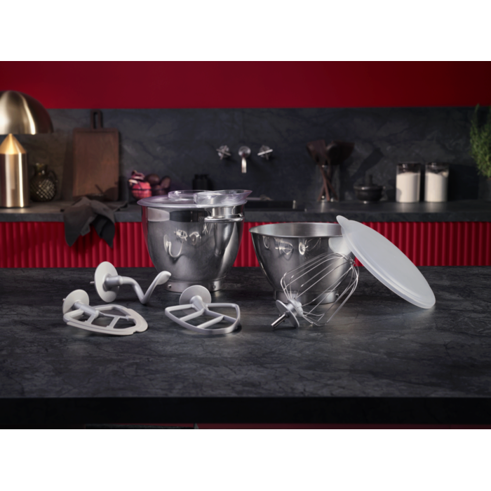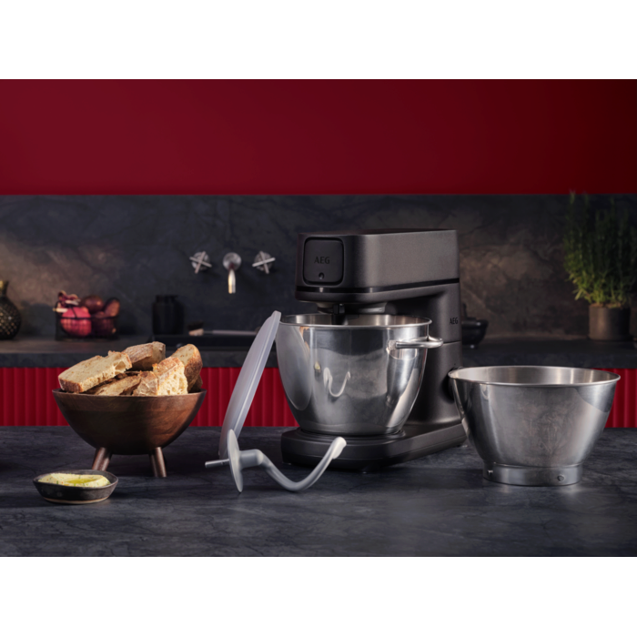 Robot assistente de cozinha Barley 2.0 com duas tigelas de aço inoxidável de 6 e 4 litros, 1.200 W (28 - 211 rpm), 10 velocidades + função pulse, tigela iluminada por LED, Acessórios: batedor de arame, batedor plano e gancho de amassar, tampa anti-splash PerfectRiseLid™, acabamento metálico, cinza antracite, cabo de 1,25 m