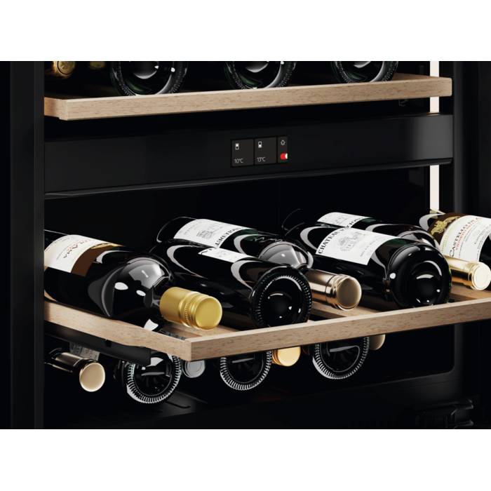 Garrafeira de encastre para 26 garrafas da Série 8000 Perfect Shelving, 58,9 cm × 55,6 cm, vidro preto, 2 temperaturas, display TFT, calhas telescópicas, porta sem puxador, abertura Push2Open