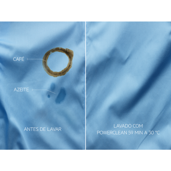 *Teste externo do programa PowerClean 59 min a 30 °C com uma carga de 4 kg mostra a 100% eficaz de 50 das nódoas domésticas mais comuns.