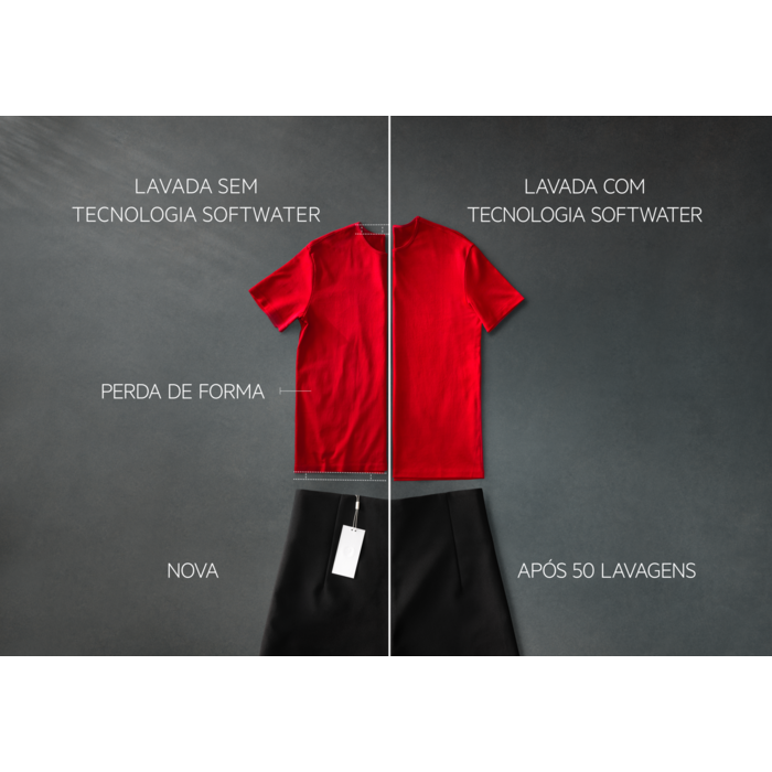 *Teste externo de solidez da cor em poliéster preto após 50 ciclos a 30°C com tecnologia Softwater.