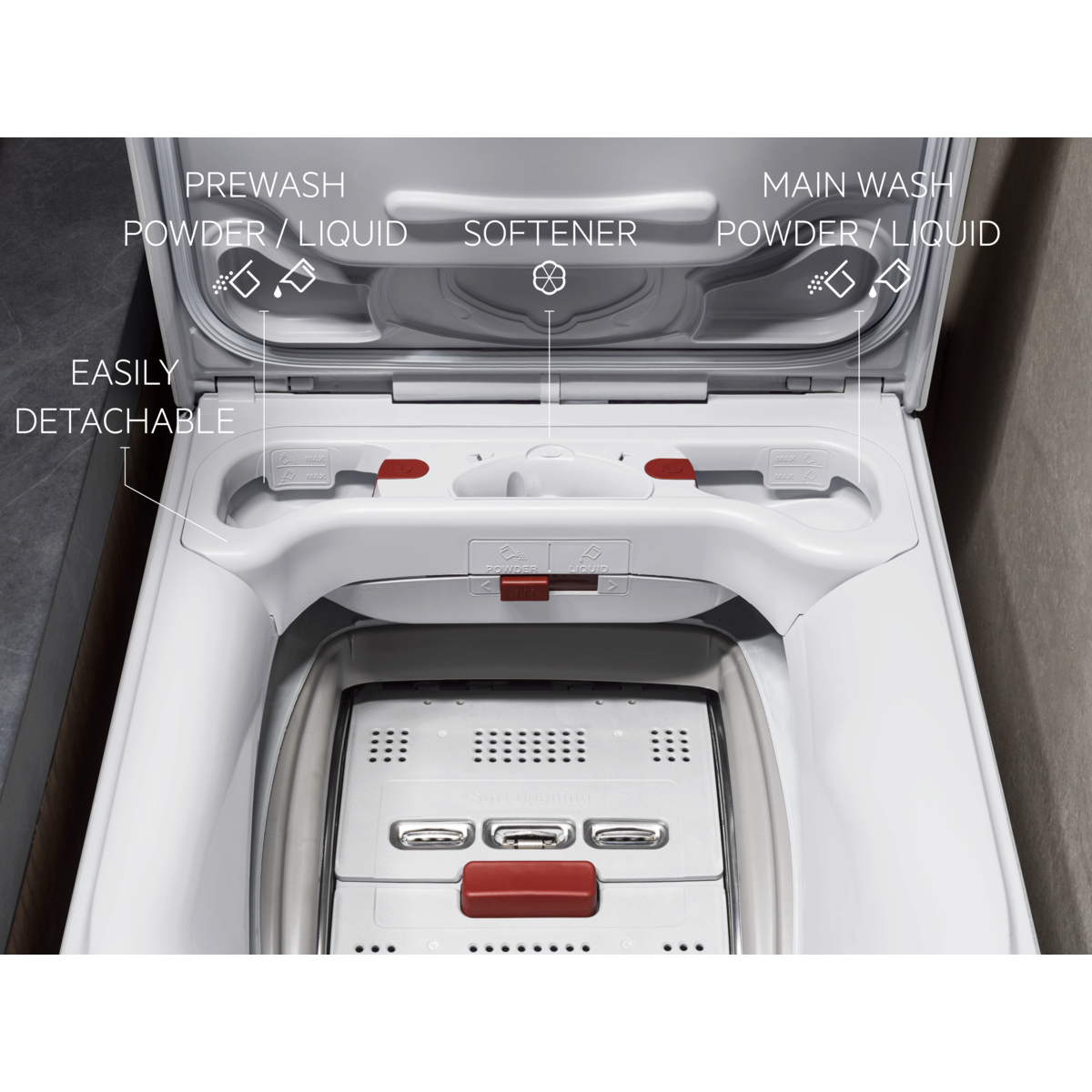 Máquina de lavar roupa de carga superior Série 6000 ProSense® de 7 kg a 1.200 rpm, com programa MaxWash 45', certificação Woolmark Blue, abertura suave do tambor e da tampa, e motor Inverter