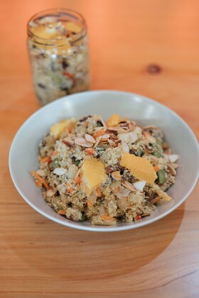 8. Servir numa bowl ou em alternativa num frasco de vidro, para levar para a praia.