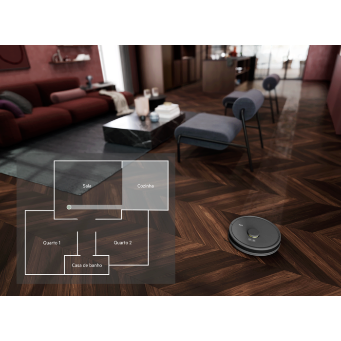 Até 175 minutos* de autonomia. Limpeza total do chão de uma só vez
