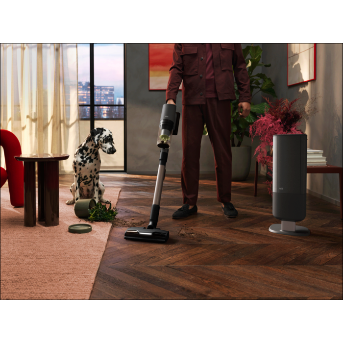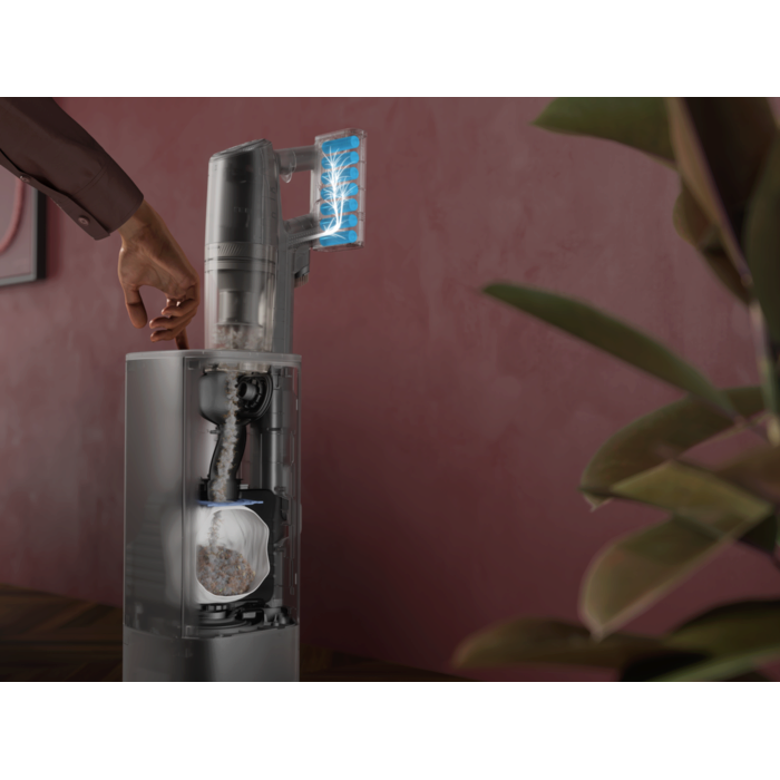 Aspirador sem fios versátil da Série 8000 Animal, 25.2V Bateria Li-Ion HD 4.0 Ah / 100 Wh, Autonomia até 90 min (3 velocidades + modo AUTO), Estação de esvaziamento, 5 acessórios e base de carga, cor cinza
