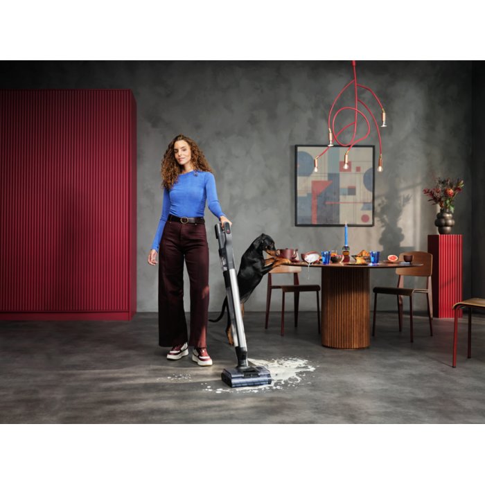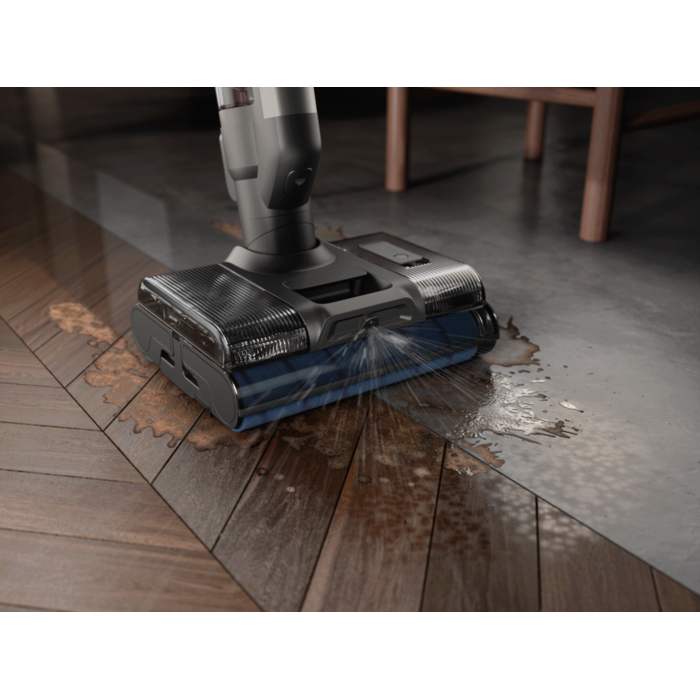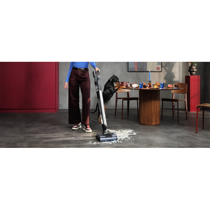 Aspirador vertical 3 em 1 da Série 8000 Wet&Dry, com autonomia até 25 minutos, depósito de água limpa com 650 ml, depósito de água suja com 570 ml, sistema inteligente de deteção do tipo de sujidade, autolimpeza, secagem automática, 3 níveis de potência, depósito de pó com 0,4 L e autonomia de até 35 minutos no modo Auto.