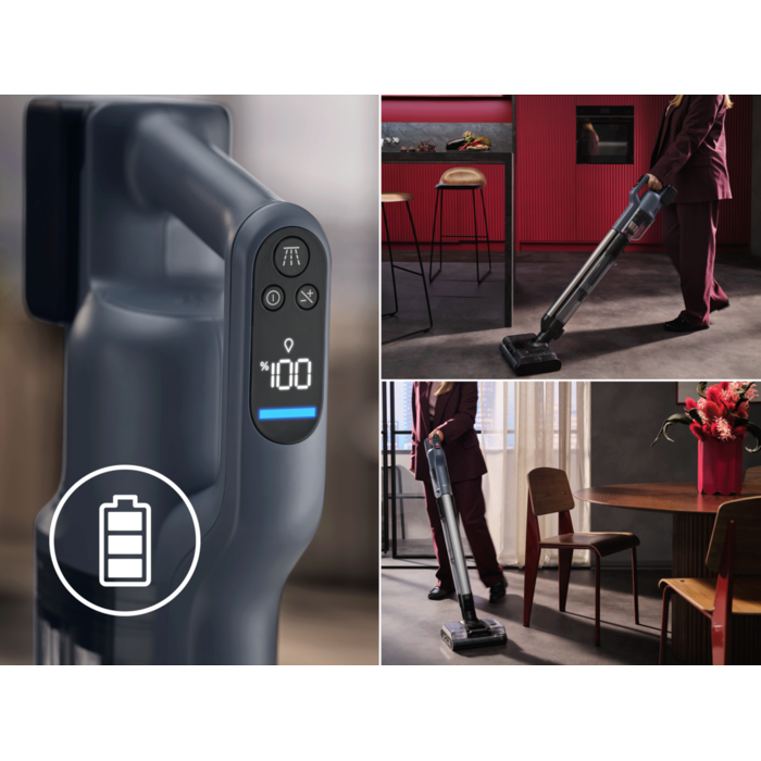 ***A autonomia é calculada por teste interno, ASTM/IEC 62885-6. A área de cobertura é medida por teste interno da Electrolux. O depósito de água tem de ser reabastecido após 25 minutos
