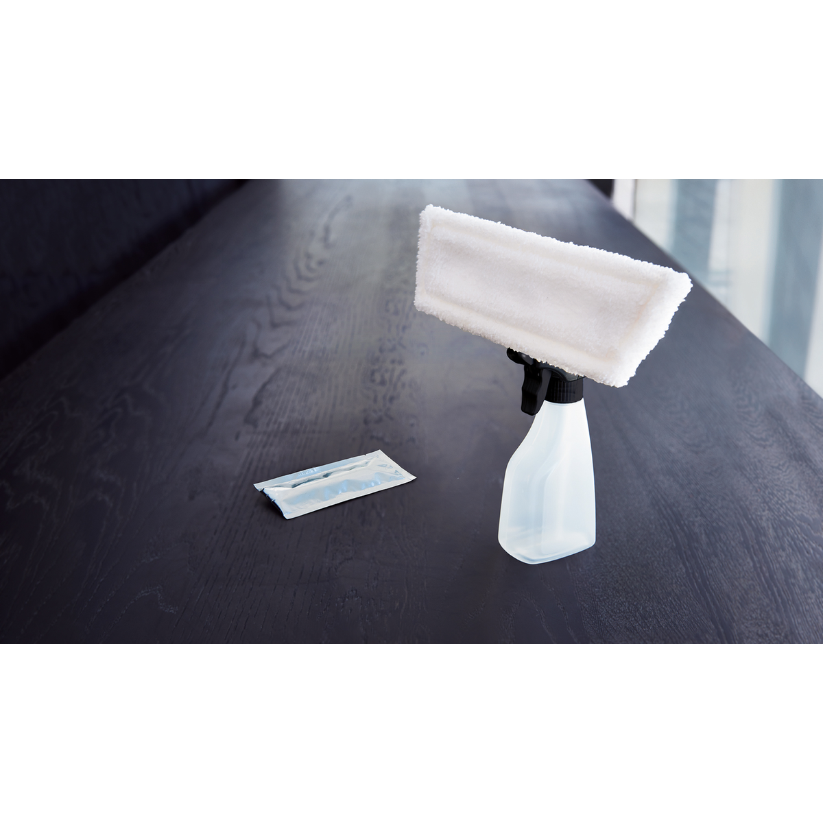 Kit de garrafa pulverizadora, suporte para pano e pano microfibra. Inclui 20 ml de concentrado.